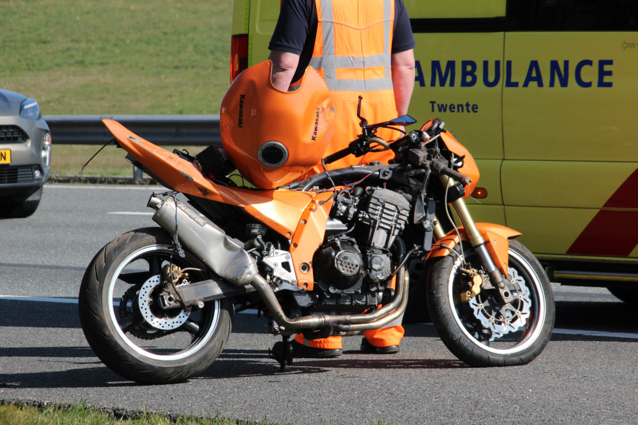 De motorrijder is met onbekend letsel per ambulance naar het ziekenhuis overgebracht.