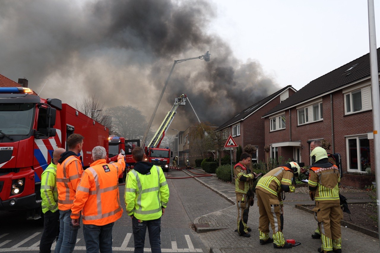 Nijverdal – In een woonwijk in Nijverdal woedt momenteel een zeer grote brand in een leegstaande loods aan de Kerkstraat. De Brandweer Twente heeft opgeschaald naar GRIP-1 vanwege de omvang en impact van het incident.